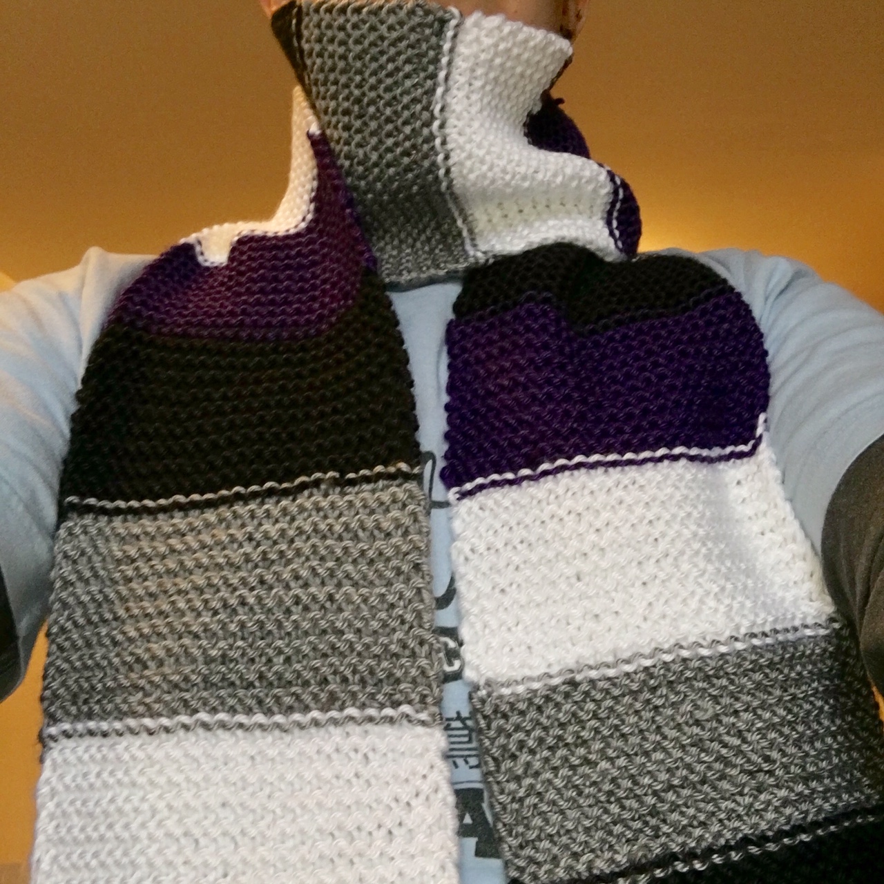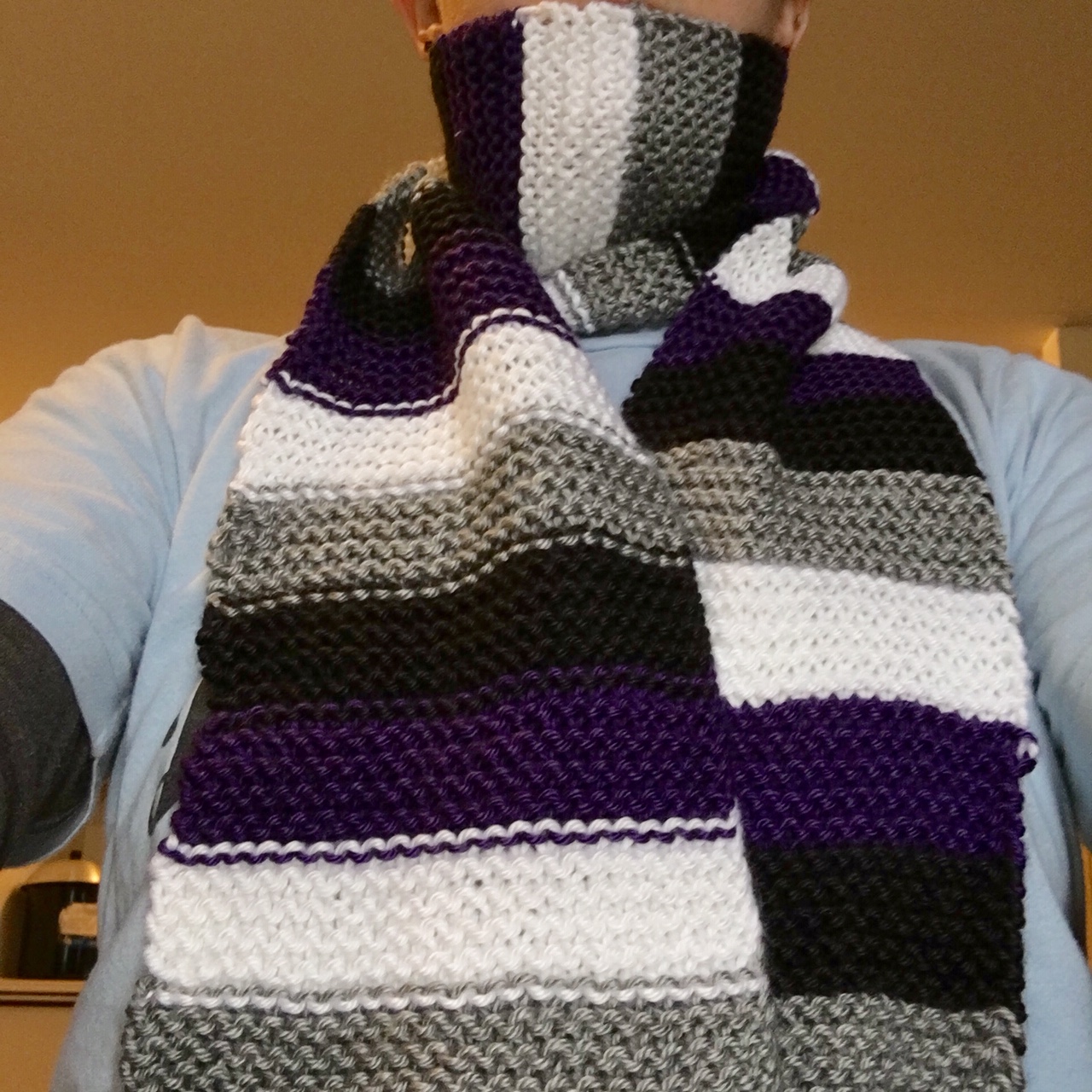 One of my hobbies is knitting, and I made a few bisexual pride and asexual pride flag scarves that I’m selling, if anyone is interested. I’m asking $25. Each is hand-knitted and made from a super soft acrylic yarn.