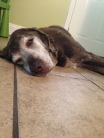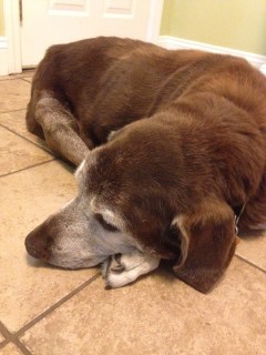 As you can probably tell by his picture, Duke is a geriatric pup. He’s gotten more and more white as the years have gone by, and although I’m not sure of his age, I’m guessing it’s around ten or twelve, which is about peak for a Labrador, and he’s a Chocolate Lab. He was a handful as a puppy, but he’s also raised three kids to five years old, and taught them to respect dogs and how to behave around dogs, and not to be afraid of big dogs (even when they plow right over you when you’re just learning to stand).