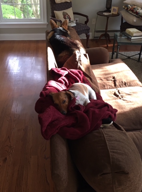 Then it was June and I was head off to pet-sit these trouble-makers. The mini-dachshund is Guiseppe and the corgi is Lillibet.